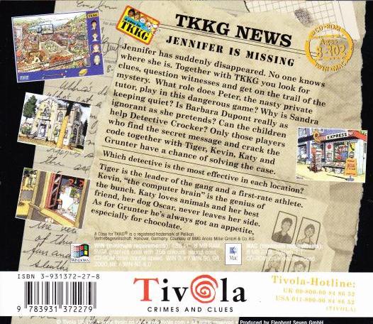 Jennifer has suddenly disappeared. No one knows where she is. Together with TKKG the children look for clues, question witnesses and get on the trail of the mystery. What role does Peter, the nasty private tutor, play in this dangerous game? Why is Sandra keeping quiet? Is Barbara DuPont really as ignorant as she pretends? Can the children help detective Glockner? Only once you've found the secret message and cracked the code with Tiger, Kevin, Katy and Grunter do you have a chance of solving the case. With a secret code-cracking disc to print out!