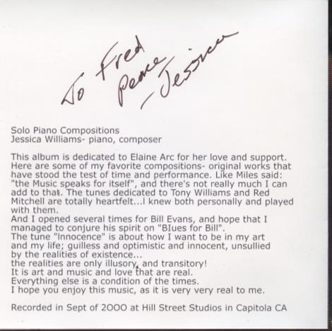 JESSICA WILLIAMS: SOLO PIANO COMPOSITIONS W/ SIGNED ARTWORK & cd
