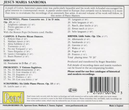 Jesus Maria Sanroma was a pianist with a beautiful tone and a passion for contemporary music. His recordings deserve a re-evaluation of his artistry. Recorded and produced by Roger Beardsley at Pavilion Records Ltd. in England.