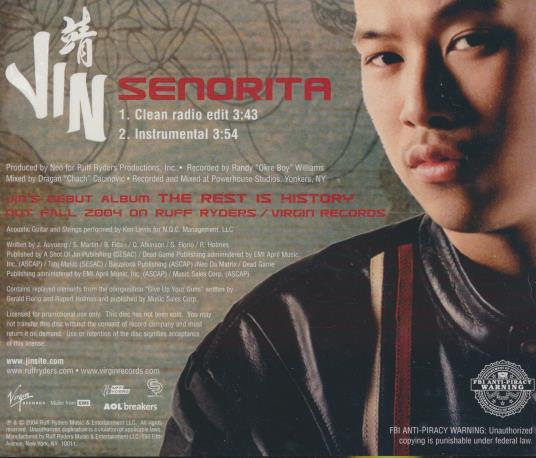 Jin's single 'Senorita' showcases his rapid-fire lyrical style and crossover appeal as a Chinese-American MC on the Ruff Ryders roster. The track blends mainstream hip-hop rhythms with melodic hooks, reflecting the polished production typical of early 2000s rap. Jin emerged on the scene as a battle rapper turned recording artist, and this release predates his debut album The Rest Is History. His work on this single highlights both radio-friendly sensibilities and underground lyricism.