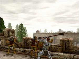 In the third-person mode players will hack-and-slash their way to victory. Joan begins the game with limited warrior skills but will gain experience after each battle. As the player allocates points to different skills, Joan gains new combination attacks and abilities. Various weapons acquired throughout the game can also increase Joan's attack abilities.