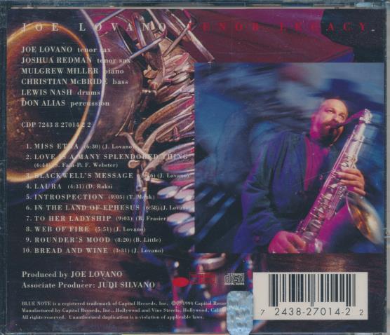 Joe Lovano: Tenor Legacy MUSIC AUDIO CD 90s jazz post-bop 1994 Blue Note SEALED