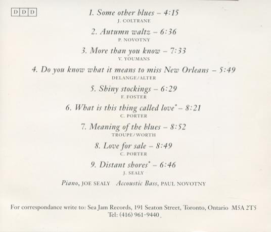 Joe Sealy & Paul Novotny Double Entendre MUSIC AUDIO CD jazz piano bass 1990 Sea