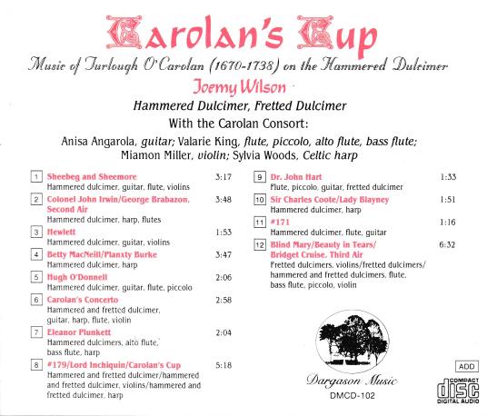Joemy Wilson: Carolan's Cup: Music Of Turlough O'Carolan On The Hammered Dulcimer w/ Autographed Artwork