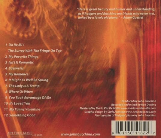 John Bucchino: On Richard Rodgers' Piano MUSIC AUDIO CD jazz solo piano 2003 Art