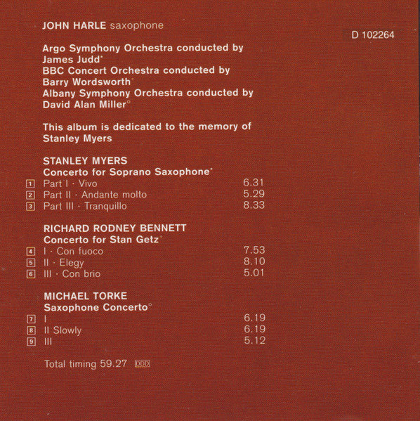 John Harle Sax Drive MUSIC AUDIO CD contemporary classical jazz 1995 Argo SEALED