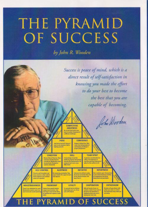 THE PYRAMID OF SUCCESS by John R. Wooden Success is peace of mind, which is a direct result of self-satisfaction in knowing you made the effort to do your best to become the best that you are capable of becoming.