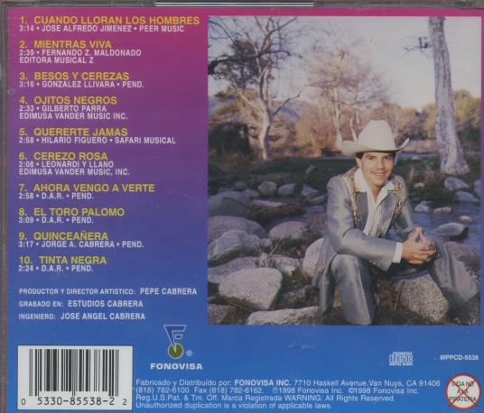 This album features a collection of classic Mariachi songs performed by Jorge Luis Cabrera.