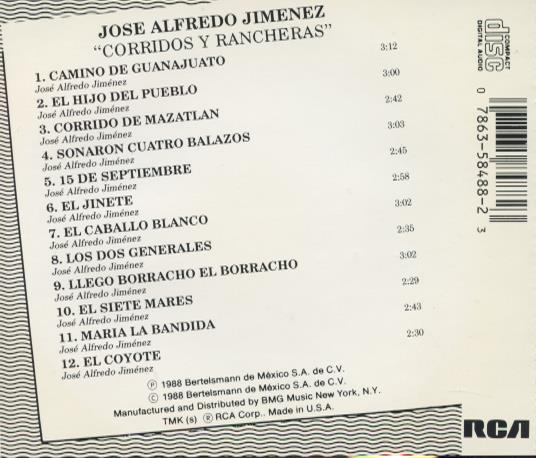 Jose Alfredo Jimenez / Corridos Y Rancheras: Mis Corridos MUSIC AUDIO CD 1988