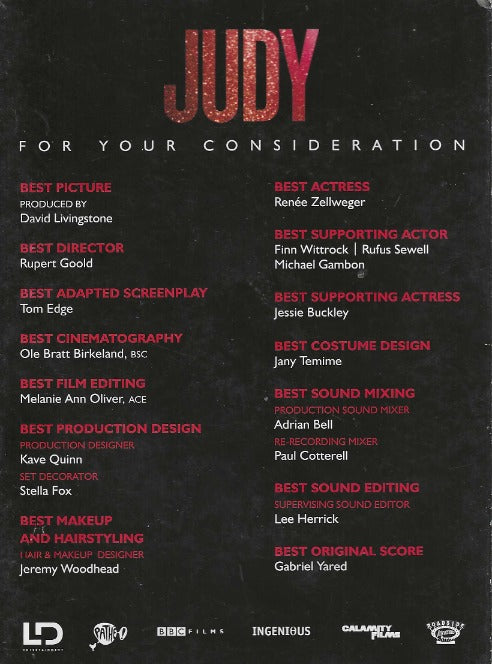Judy FYC DVD VIDEO MOVIE biographical drama Judy Garland 2019 Renee Zellweger