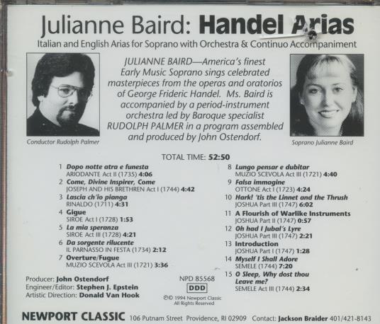 Julianne Baird: Handel Arias MUSIC AUDIO CD classical opera 1994 Newport SEALED