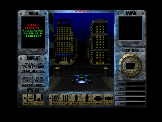 Dogfight your way through missions as you monitor your ammunition, fuel, shield, pods and cash levels. Use radar to track enemy forces and navigate the maze-like streets in a futuristic world gone mad. You're mankind's last hope -- do you have what it takes to save the remaining remnants of Earth's bio-diversity?