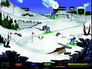The arena games include Keyboard Kicks, a soccer game in which you type letter combinations in an attempt to score goals, Roller Racing, a skateboarding game where letters or keyboard combinations are needed to avoid obstacles and Track Tricksters. In Fans Go Wild, you must assemble a signboard in the stands by typing letter combinations while Cliff Hanger requires you to help mountain climbers make handholds and avoid rocks dropped by Sparks. Finally, Trail Blazer requires you to type letter combinations to help teammates avoid obstacles on a downhill skiing course.