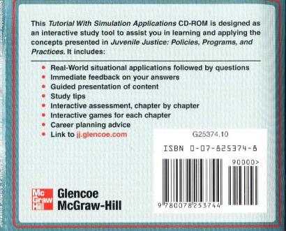 This tutorial with simulation applications CD-ROM is designed as an interactive study tool to assist you in learning and applying the concepts presented in Juvenile Justice: Policies, Programs, And Practice. It includes: