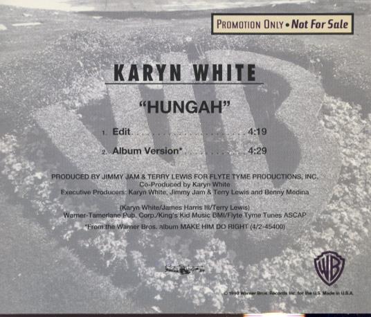 Karyn White is an American singer known for her smooth R&B vocals and urban contemporary style, with production from Jimmy Jam & Terry Lewis. This release is marked as Promotion Only.