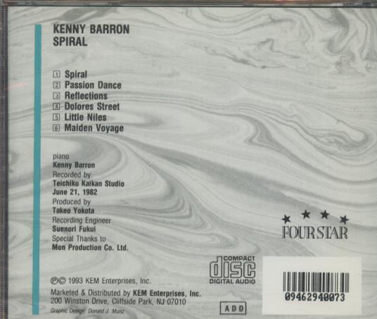 Kenny Barron: Spiral MUSIC AUDIO CD 90s piano jazz! 1993 KEM Enterprises SEALED