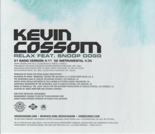 Kevin Cossom: Relax PROMO w/ Artwork MUSIC AUDIO CD Snoop Dogg Radio Instrument