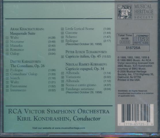 Kiril Kondrashin, RCA Victor Symphony Orchestra: Khachaturian: Masquerade Suite / Kabalevsky: The Comedians / Tchaikovsky: Capriccio Italien / Rimsky-Korsakov: Capriccio Espagnol