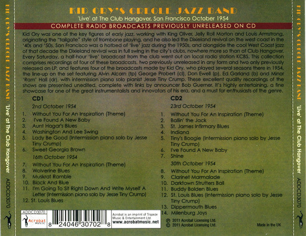 Kid Ory's Creole Jazz Band: Live At The Club Hangover 2-Disc Set MUSIC AUDIO CD