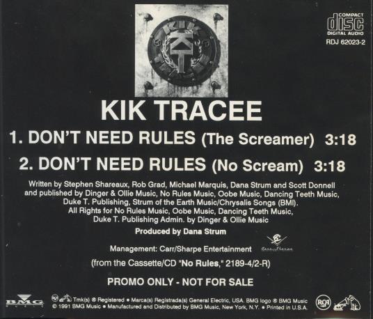 Kik Tracee: Don't Need Rules PROMO MUSIC AUDIO CD hard rock hair band! 2 tracks