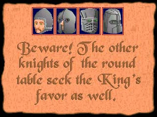 The Deluxe edition included many advance features, including (1) the most difficult skill option, in which the opposing knights play with great skill; (2) hold animated joust tournaments to win gold, honor, and even the territories of opposing knights; (3) summon the magic mantra of Merlin at a moment's notice to wreak havoc on your enemies; (4) build castles on any territory, not just your home territory; (5) play against 1, 2, 3 or all 4 computer players; (6) collect emergency taxes (but don't collect too much, or the peasants will revolt; (7) play any of the five knights as your hero, not just Lancelot.