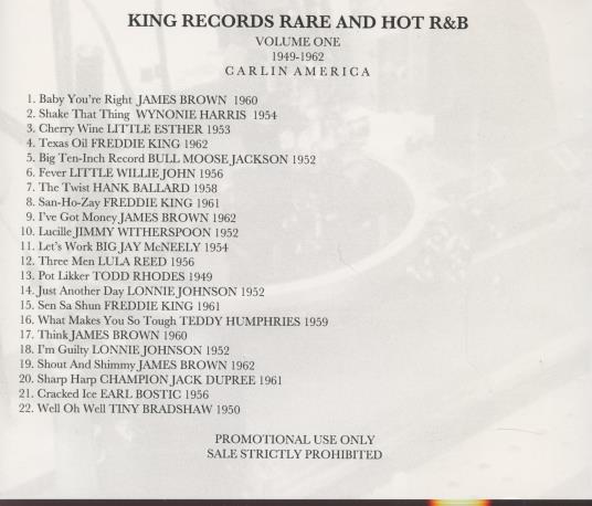 King Records: Rare And Hot R&B 1949-1962 Vol. 1 Promo