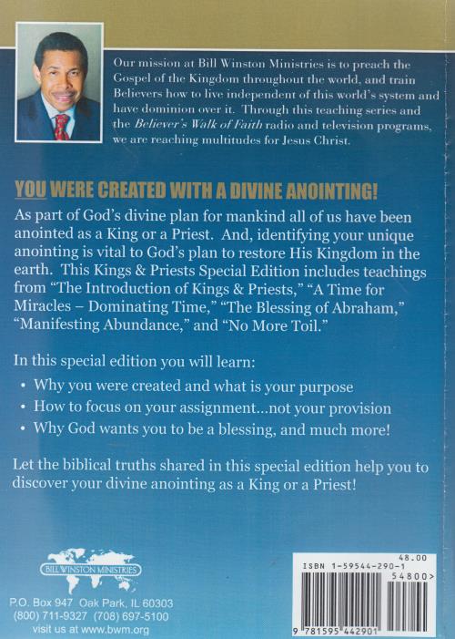 As part of God's divine plan for mankind, all of us have been anointed as a King or a Priest. Identifying your unique anointing is vital to God's plan to restore His Kingdom on the earth. This Kings & Priests Special Edition includes teachings from "The Introduction of Kings & Priests," "A Time for Miracles – Dominating Time," "The Blessing of Abraham," "Manifesting Abundance," and "No More Toil."