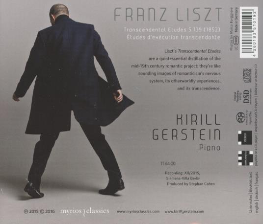 Kirill Gerstein is an acclaimed pianist known for his virtuosic and expressive performances of Romantic piano repertoire. This album features his interpretation of Franz Liszt's Transcendental Etudes, a cornerstone of 19th-century piano literature that combines technical brilliance with deep emotional expression. Recorded at Siemens Villa, Berlin in December 2015 and produced by Stephan Cohn. Total playing time: 64:00 minutes.