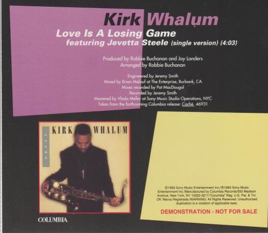 Kirk Whalum: Love Is A Losing Game featuring Jevetta Steele single version 4:03