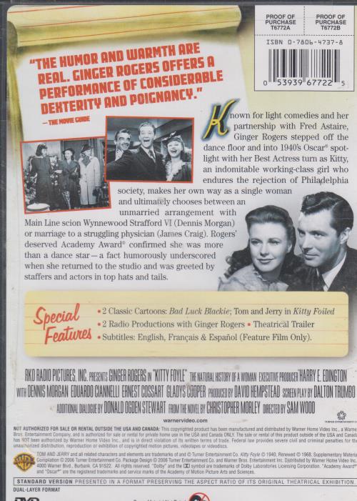 Kitty Foyle DVD VIDEO MOVIE 1940 Ginger Rogers Dennis Morgan James Craig SEALED