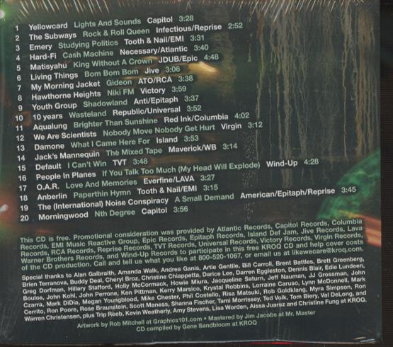 This compilation features a collection of alternative and rock tracks from various artists popular in the mid-2000s, highlighting the diverse styles played on the influential Los Angeles radio station KROQ.