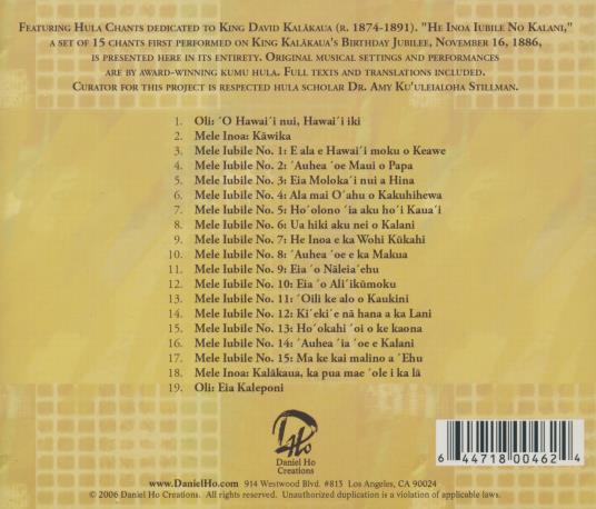 Legacy Hula Volume 1. Featuring Hula Chants dedicated to King David Kalākaua (r. 1874-1891). A set of 15 chants first performed on King Kalākaua’s Birthday Jubilee, November 16, 1886, is presented here in its entirety. Original musical settings and performances are by award-winning kumu hula. Full texts and translations included. Curator: Dr. Amy Ku’uleialoha Stillman. © 2006 Daniel Ho Creations. All rights reserved.