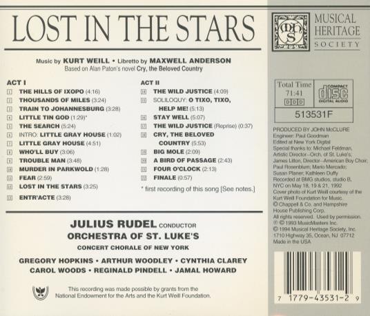 The Kurt Weill, Concert Chorale Of New York, Orchestra Of St. Luke's, Julius Rudel: Lost In The Stars