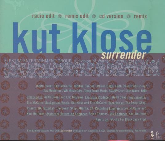 Kut Klose were an American R&B trio who emerged in the mid-1990s and worked closely with Keith Sweat. Their sound blends smooth vocal harmonies with contemporary R&B production and soulful balladry. The single "Surrender" showcases lush arrangements and mid-tempo grooves characteristic of the era. Production on this release features contributions from Keith Sweat and Eric McCaine.