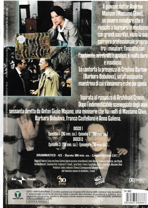 The young doctor Andrew Manson (Massimo Ghini), a poor miner who managed to graduate in medicine with great sacrifices, begins his professional career among the miners themselves: the impact with the environment, backward and apathetic, is very harsh and insidious. He finds comfort in the presence of Cristina Barlow (Barbara Bobulova), a charming schoolteacher whom he falls in love with and later marries. Inspired by the novel by Archibald Cronin. After the unforgettable television series of the sixties directed by Anton Giulio Majano, a miniseries starring Massimo Dim, Barbara Bobulova, Franca Castellano, and Anna Galiena.
