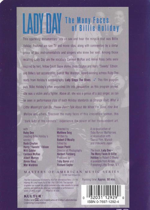 Lady Day: The Many Faces Of Billie Holiday DVD VIDEO DOCUMENTARY blues jazz sing