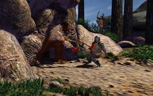 True role-playing game elements are scarce. You can adjust Luther's abilities by choosing how you deal with the beings you meet. Defeat weaklings with your brute force and you gain nothing. Take on more powerful beasts using cunning and clever weapon combinations (rub a poison sack on your sword for extra killing strength) and you become more powerful. But hard-core RPG gamers looking for customized protagonist creation or a carefully selected band of trusted compadres will be disappointed. Luther acts alone. What gives LOL II its RPG label is its fanciful (albeit confusing) back story and plethora of colorful characters who prefer chatting to fighting.