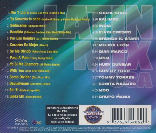 Latin Mix USA MUSIC AUDIO CD early 2000s hits salsa tropical remixes 2004 Sony