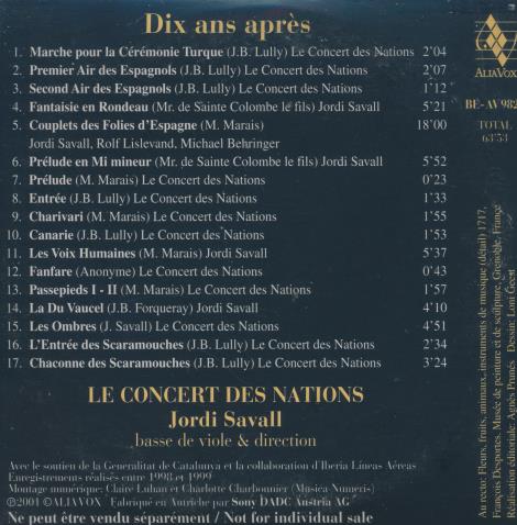 Le Concert Des Nations / Jordi Savall: Dix Ans Apres MUSIC AUDIO CD baroque 2001