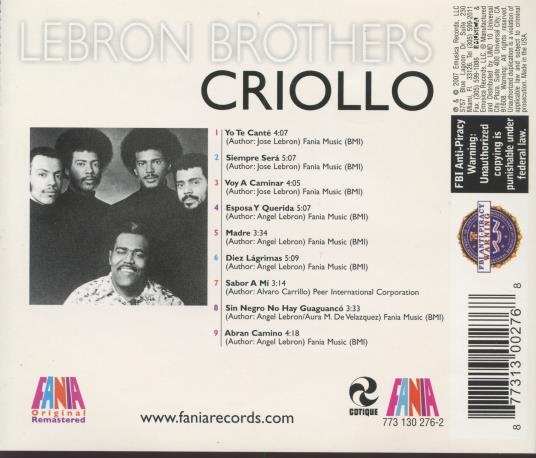 Lebron Brothers: Criollo MUSIC AUDIO CD latin salsa Guaguanco 2007 Fania Records