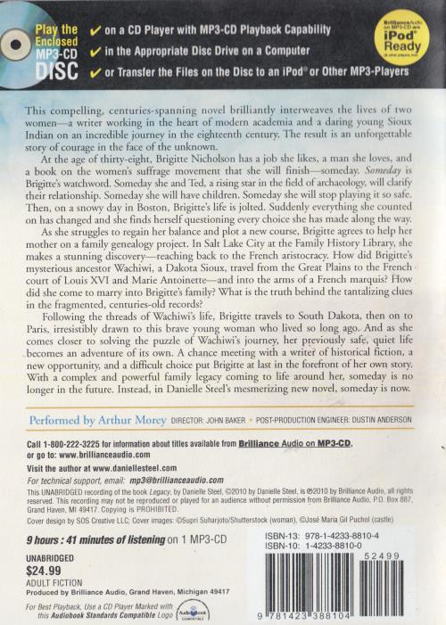 Legacy by Danielle Steel MP3 CD AUDIO BOOK historical fiction women's journey