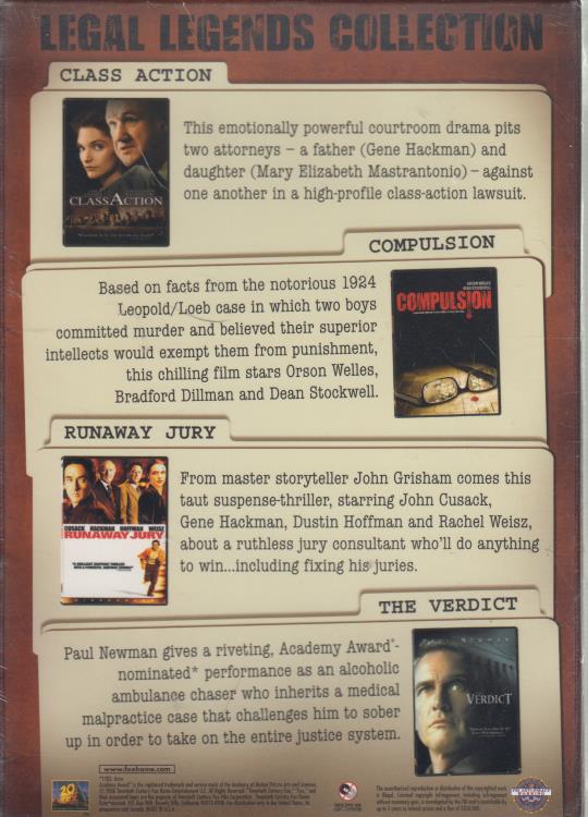 Legal Legends Collection 4-Disc DVD VIDEO MOVIE Gene Hackman Class Action SEALED