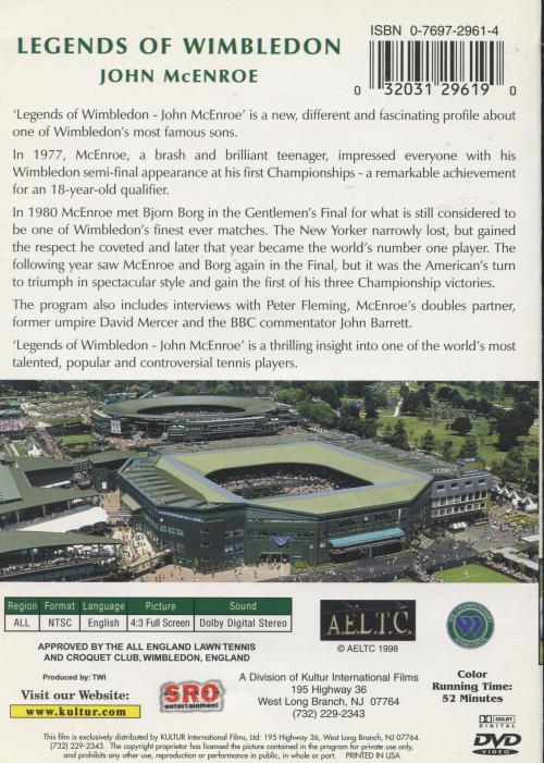Legends Of Wimbledon: John McEnroe DVD VIDEO DOCUMENTARY tennis star history '04