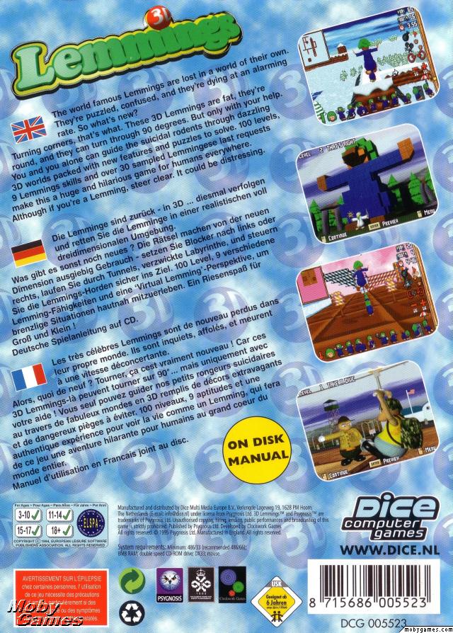 You, as in all other Lemmings games, are responsible for helping hoards of lemmings through hazardous environments to safety. However, this lemmings game goes just that little bit further by introducing the lemmings to 80 new 3-dimensional levels!