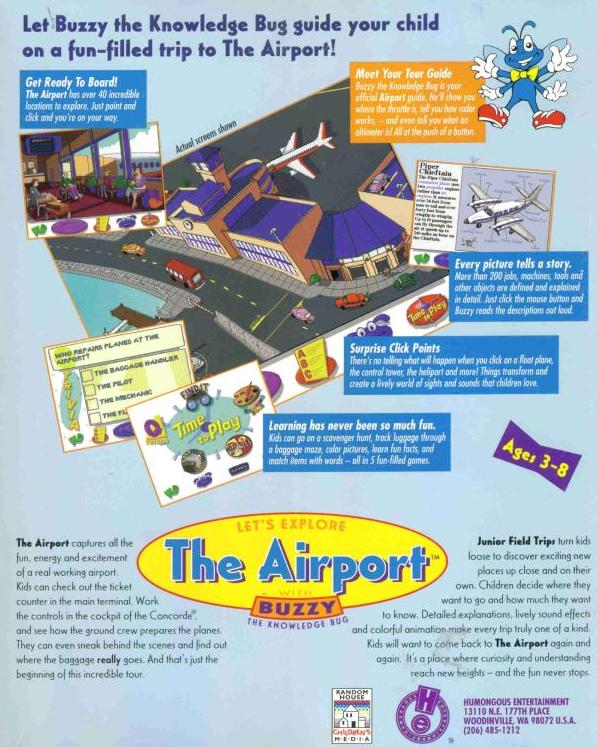 Buzzy the Knowledge Bug shows up once again to take kids around a place they've probably been to many times but don't know much about: the airport. Buzzy is their tour guide to all the sights, sounds and facts about one of the busiest places in the world. Let's Explore the Airport with Buzzy features more than 200 jobs, machines and tools which Buzzy explains aloud (older kids can turn this feature off and simply read the explanations to themselves). Like most Humongous games, there are plenty of hot spots scattered all over every screen which yield more than one surprise when clicked.
