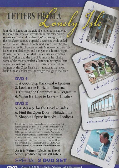 Join Mark Finley on the trail of a letter as he explores the seven churches of Revelation in this remarkable even-tape series. More than 1,900 years ago, John the Revelator penned a special document while exiled on the Isle of Patmos. It contained seven unmistakable letters to specific churches of Asia Minor—churches that faced major challenges and dangers in a hostile, pagan Roman Empire. Pastor Mark Finley visits fascinating sites in Turkey and the Isle of Patmos as he follows some of the most remarkable letters in history to their seven destinations. Each letter is like a prescription ritten by the Great Physician—messages that meet asic human challenges—messages that go to the heart. It Is Written is a deeply spiritual ministry, passionate about communicating the gospel to the world. Produced by It Is Written Television.