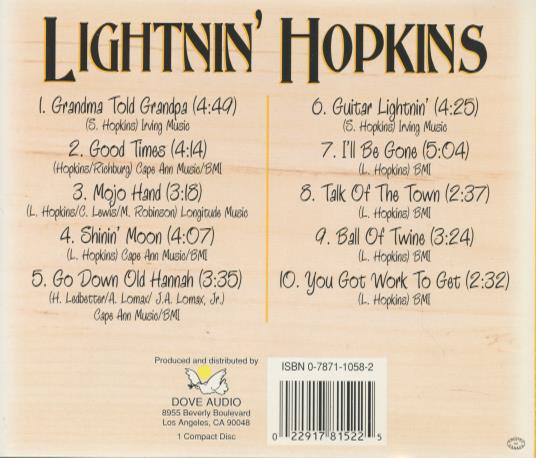 Lightnin' Hopkins: Shinin Moon MUSIC AUDIO CD texas acoustic blues guitar! Dove