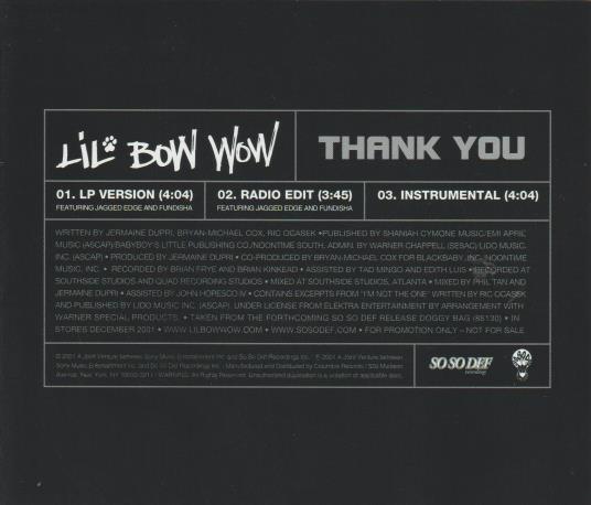 Lil' Bow Wow: Thank You Promo w/ Artwork