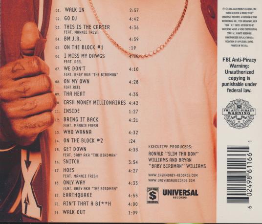 Executive Producers: Ronald Slim Tha Don Williams and Bryan Baby Birdman Williams. Manufactured and marketed by Universal Records. © 2004 Cash Money Records, Inc. All rights reserved. Printed in the USA.