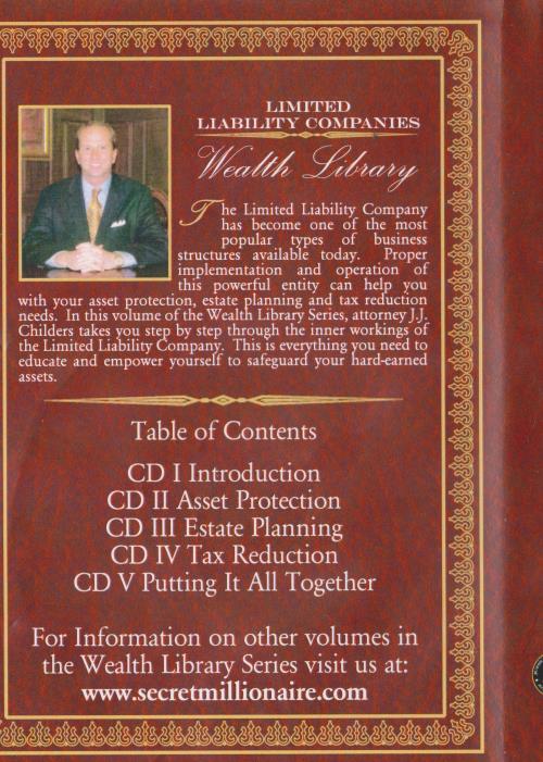 The Limited Liability Company has become one of the most popular types of business structures available today. Proper implementation and operation of this powerful entity can help you with your asset protection, estate planning and tax reduction needs. In this volume of the Wealth Library Series, attorney.J.J. Childers takes you step by step through the inner workings of the Limited Liability Company. This is everything you need to educate and empower yourself to safeguard your hard-earned assets.